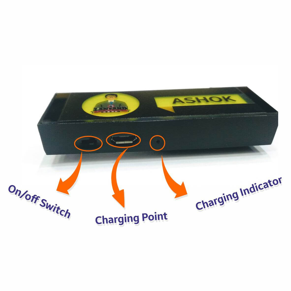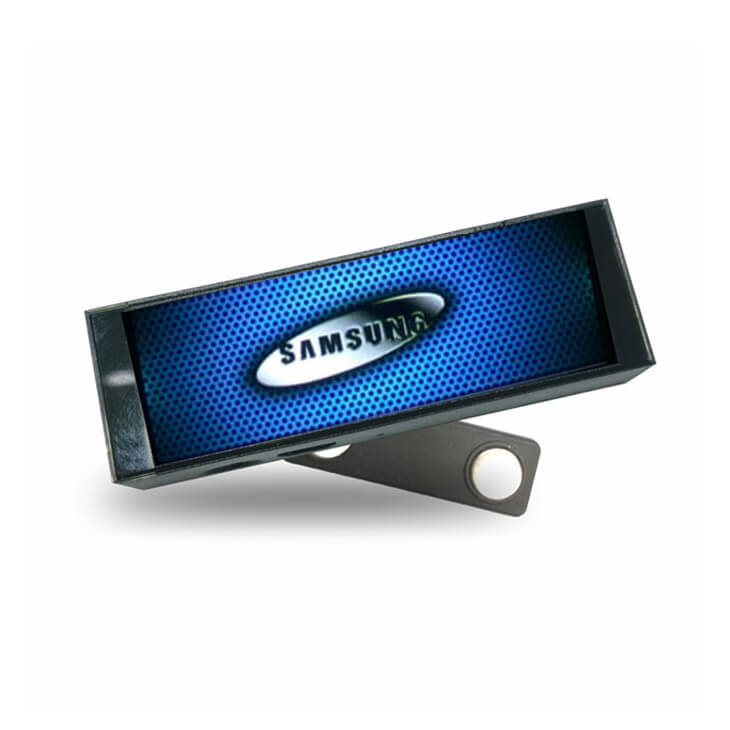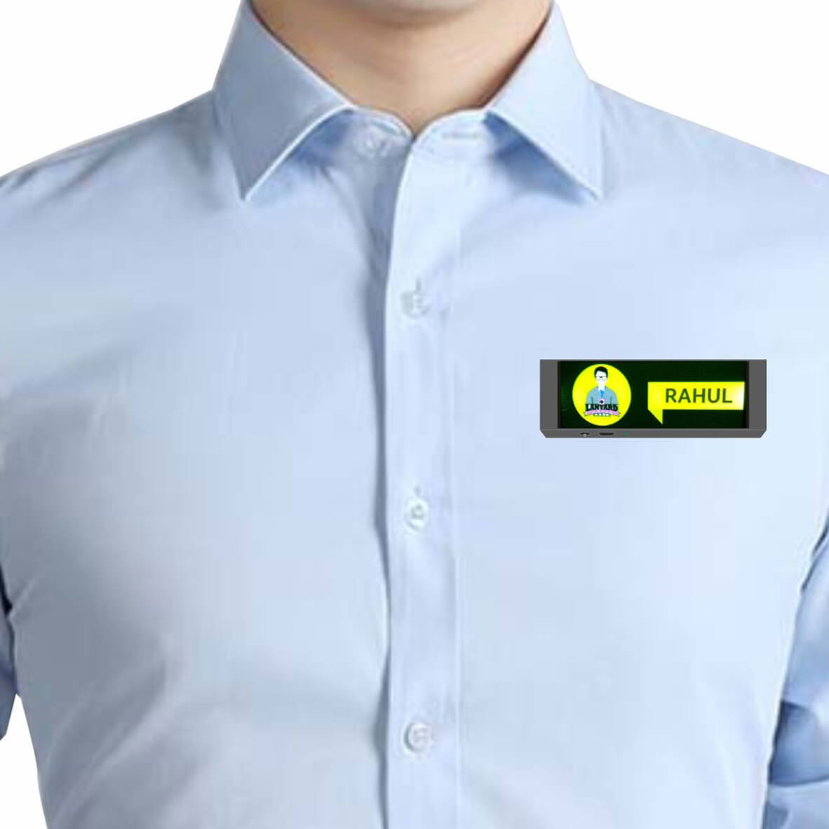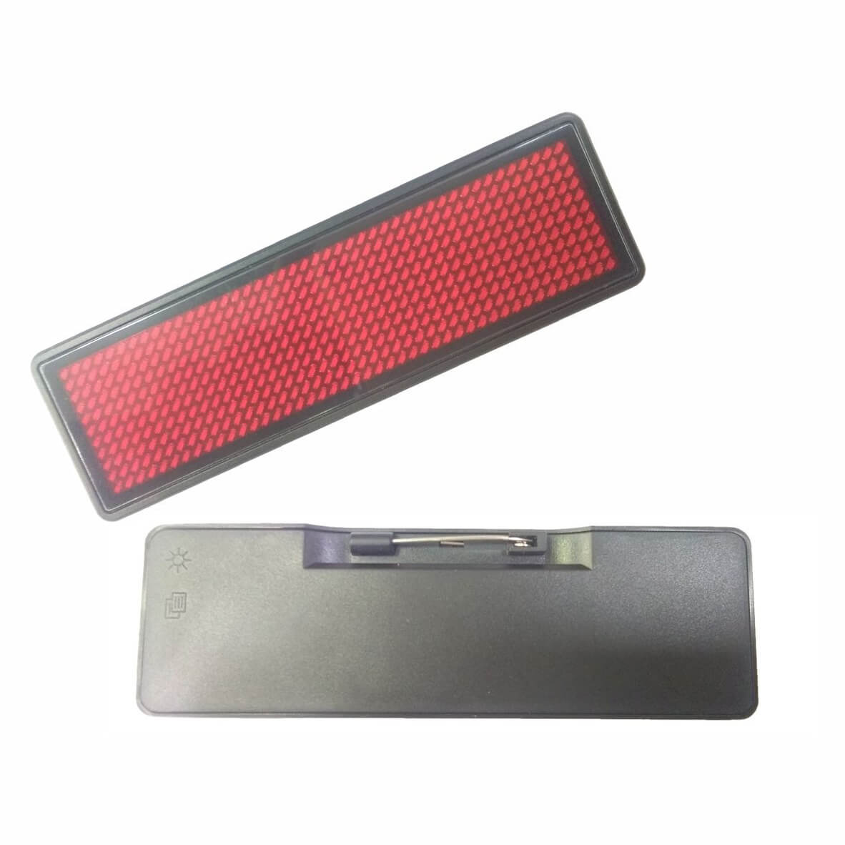 Programmable scrolling Blue LED name tag ideal for restaurants, trade shows, reunions. Put names, promotions, web addresses, anything you want. Internal rechargeable Li-ion battery for repeated use. Input your text & graphics by USB from your PC.